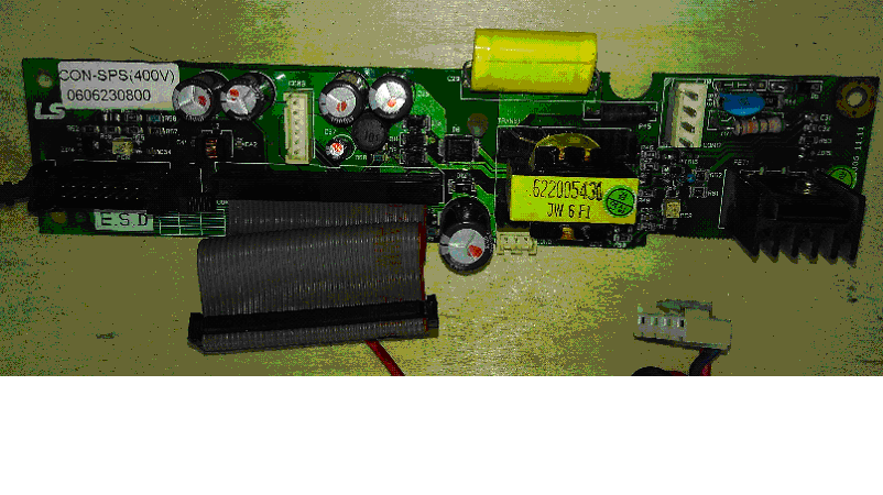 该机型电路,有两块开关电源电路板,一者为六路驱动电路和散热风扇提供供电电源,二者提供故障检测电路所需的正负15V供电,MCU及面板所需的15V供电及端子24V电源。后者实物如图一所示。