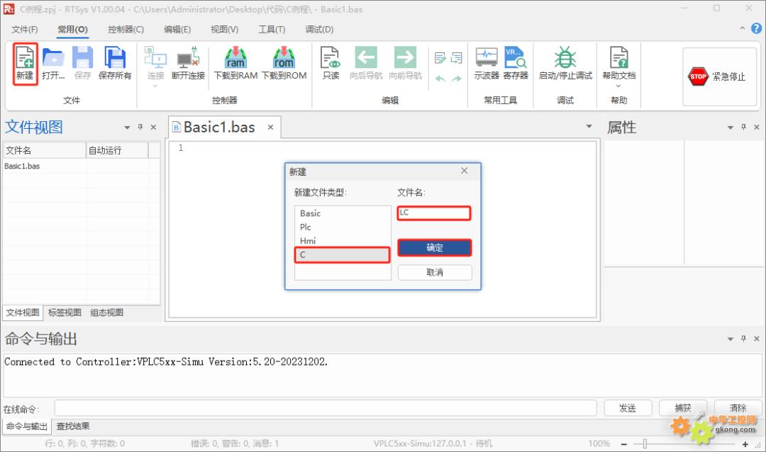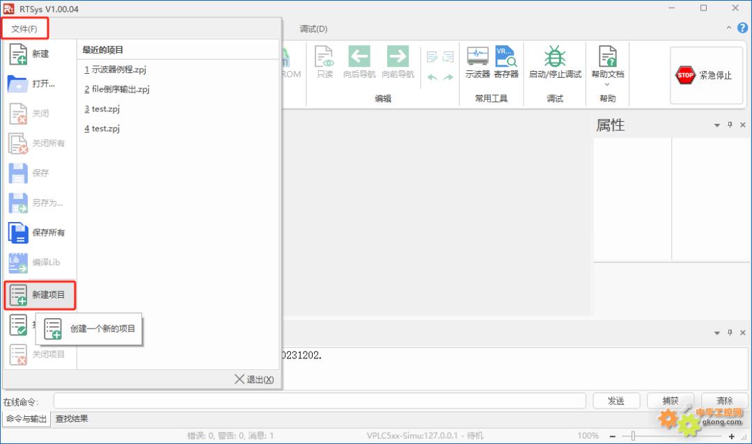 1.在RTSys软件中单击菜单栏“文件”,在下拉窗口中选择“新建项目”。选择项目文件存入的路径并且自定义命名项目名称。
