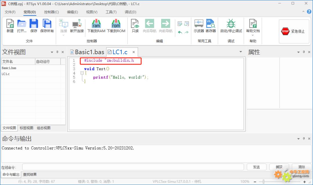 头文件声明语法:#include “xxxxx.h”。“xxxx.h”为引用内置函数的头文件。如下图所示,“.h”头文件的文件路径需与项目文件路径一致。“zmcbuildin.h”文件可联系正运动工程师获取。