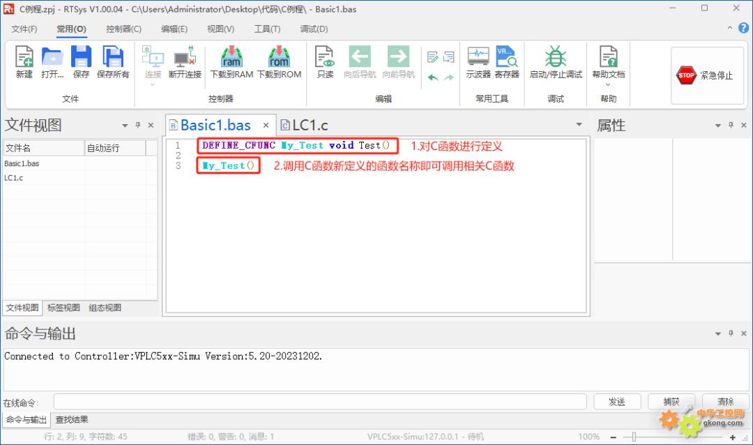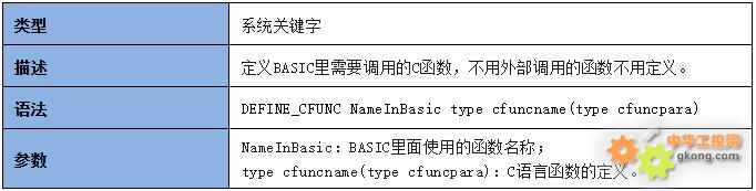 7.在BASIC程序中使用C函数时需要使用关键字“DEFINE_CFUNC”对被使用C函数进行引用定义,定义后在Basic文件中使用重新赋予的函数名即可调用该C函数。