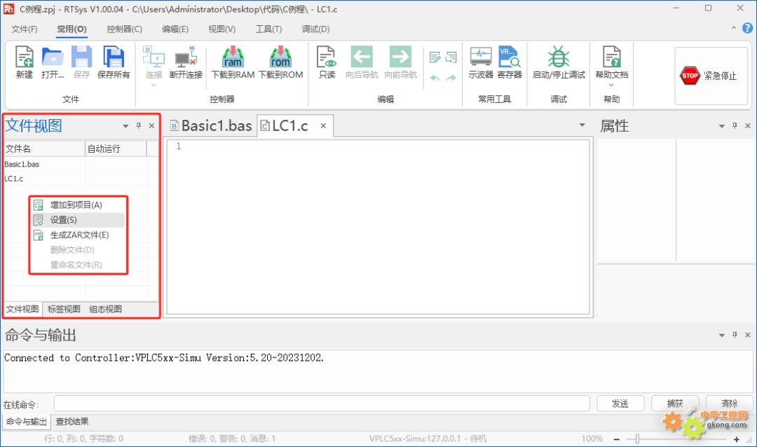 4.右键单击“文件视图”中空白区域,点击弹出窗口中“设置”一栏,进行编译平台设置操作。