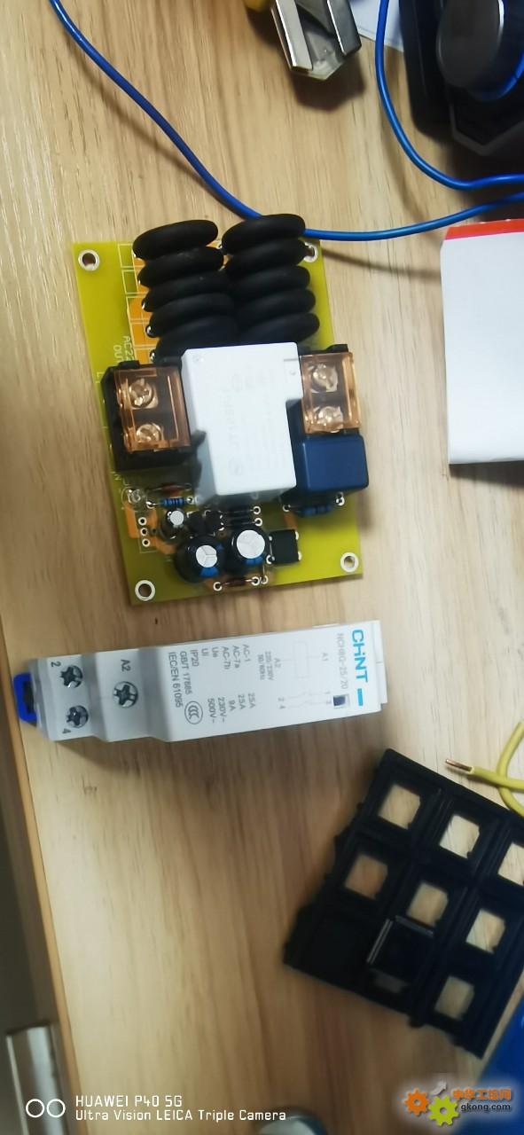 今天购买的电气元件回来了,一个小型交流接触器,一个软启动板。空开是自已找了个3A的,受于变压器空间有限只能想办法硬塞进这个机壳里了。。改装完成后送电不再跳闸了。。