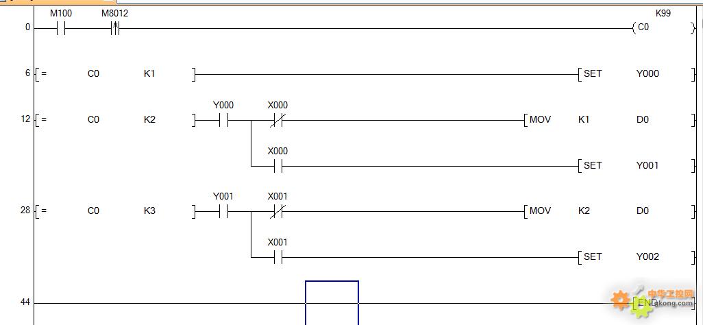 原理是开始后第一次计数先导通Y0,对应的是第一路
