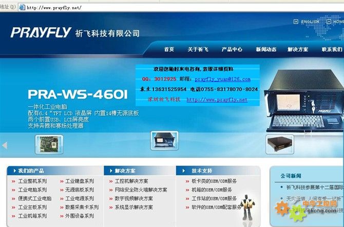 祈飞科技有限公司成立于1999年,是中国工业计算机研究、开发、制造和销售及其系统整合于一体的高科技企业,总部设在香港,在台湾和深圳拥有两大制造中心,并在台湾及大陆的北京、上海、深圳、广州等多个城市设有直属分公司,产品畅销于美国、德国、荷兰、澳大利亚、印度。祈飞科技立足于自主研发和创新,并且拥有产品技术的自主知识产权,产品主要包括工业整机系列(硬件防火墙,VPN,审计,网关,视频会议)、工控机(1U,2U,4U等),一体化工业电脑、便携式工业电脑、工业主板(X86,17X17MINI,PC104,嵌入式,3.5寸,5.25寸。。。。。。)系列、工业机箱系列、工业键盘系列、无源底板系列、工业电源系列和数据采集卡系列以及外围设备等,同时为客户提供OEM/ODM服务。目前祈飞科技都在与很多大公司合作,主要是整机的OEM。其产品目前已经在石油石化、通讯、公路、铁路、城市轨道、金融、能源电力、煤矿安全、安防、博彩、医疗设备和工业现场等行业得到广泛应用。作为中国高新技术企业委员会成员,祈飞在国内同行业中首家通过ISO-9001:2000国际质量体系认证,从而完全保证了“PRAYFLY”品牌系列的卓越品质。