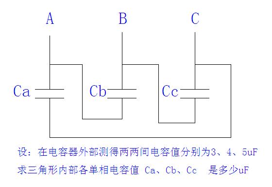 如果测量AB时,把C与B短接,测量BC时A与C短接,测量CA时B与A短接,也可以求Ca Cb Cc但与本题目不符暂不讨论。