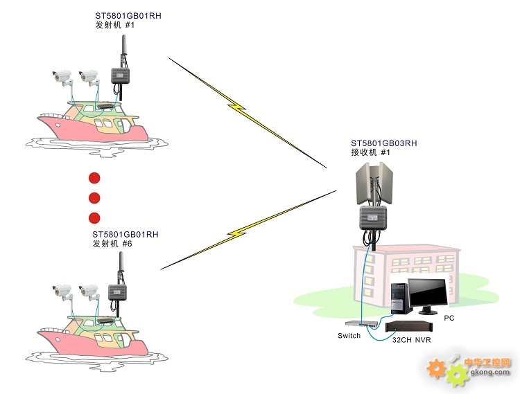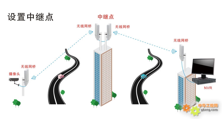 点对多点传输模式是在点对点传输模式上发展而来,是一个接收端对多个发射端,把多个分散的远程的网络连接在一块,其结构相对于点对点传输模式来说较为复杂。点对多点无线桥接通常以一个网络作为中心点,传送无线信号,其他接收点进行信号接收。中心点位置的天线在不同的监控项目中采用不同类型的天线来进行搭配。其类型可分为全向天线,适用于连接点距离近,分布角度大,数量多的情况下。扇面天线,具有能量定向聚集功能特点,远程连接点在某一角度范围内集中时,较为适用。定向天线,能量定向聚集功能相当强大,信号的方向指向性非常好,远程连接点数少时,角度方位相当集中时,可适合采用。组合天线,顾名思义就是几种组合情况下使用。