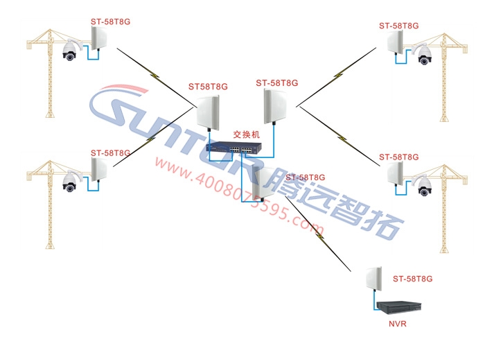 该工程所采用的监控设备统一为1080P的高清网络摄像头,而传输则设备采用了腾远智拓的大功率无线网桥ST58T8G。