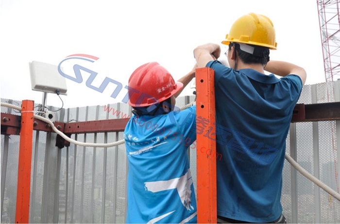 由于该塔吊的高度会随着大厦的建设而不断升高,所以为了能够使安装在塔吊上的无线监控设备不会因为高度升高而造成监控影响,所以各个塔吊都采用了无线网桥+角度天线的组合,固定了角度之后,再从中间设置中转点,通过中转点整合四路监控影像时候,再统一通过无线网桥传输回监控中心。