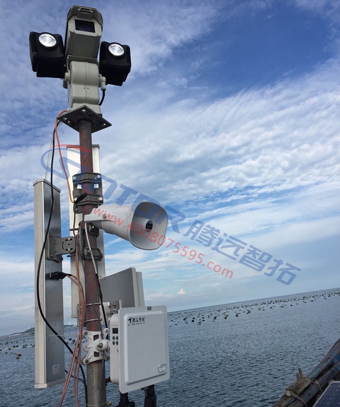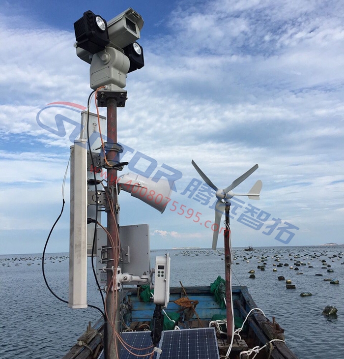 由于海面上没有供电源,所以采用风光互补供电系统是最妥当的方法,另外,工作人员在养殖场工作时,养殖场主也可以通过音箱做出语音指示。