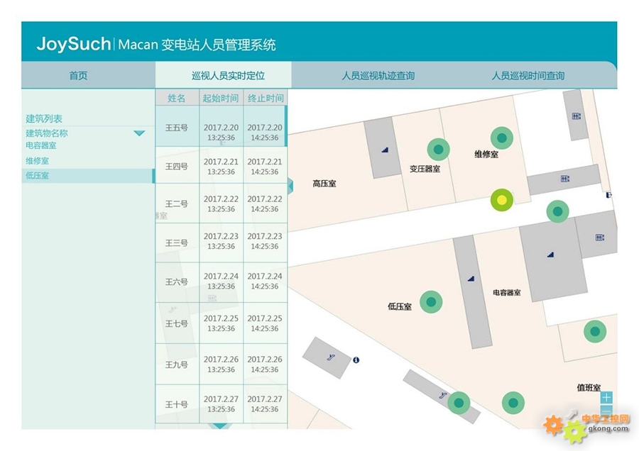 管理人员可在后台查看进出变电站检修人员的姓名、时间等信息;可查看检修人员在变电站内活动的轨迹、逗留时间,出现异常情况可实现事件追溯。