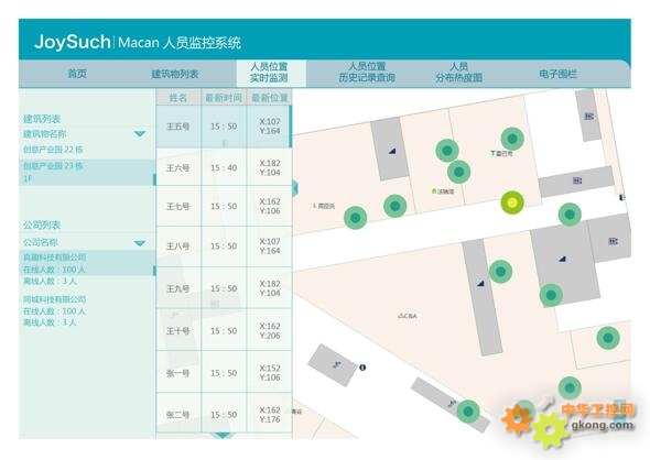 1、施工人员实时定位:可查看站内施工人员实时位置,在地图上精准显示。便于对作业人员进行分类统计、查看区域人员分布数量,实现高效人员管理与调度。