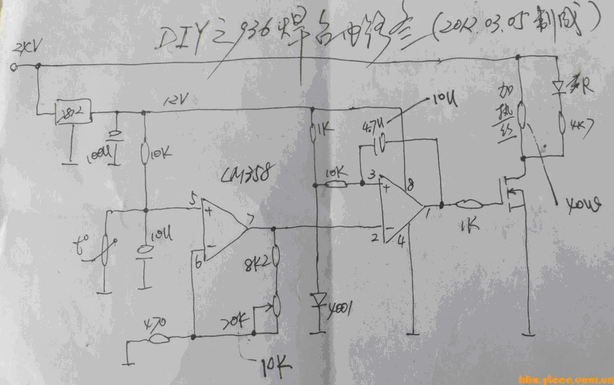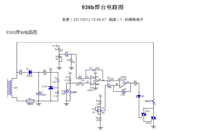 对于集成电路的线路板焊接,恒温电烙铁非常必要。否则,稍有不慎就会损坏元器件。低压恒温电烙铁是必须的。由楼上给出的电路图,看来它的控制电路还是很简练的。前级是温度闭环控制,后级应该是PWM输出驱动加热元件吧。都应该是运放的典型电路。