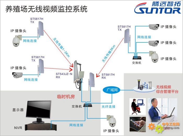 2、微波无线传输设备:常用于水产养殖场的微波无线传输设备为数字无线网桥ST5817H、ST543JZ-N等,用于监控视频数据传输。