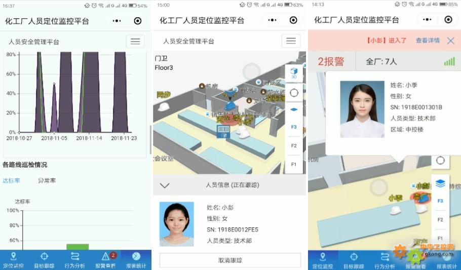 此次,化工人员定位管理小程序将以“定位监控、目标跟踪、行为分析、报警查看、报表统计”五大核心功能,为化工管理带来全新的应用体验!
