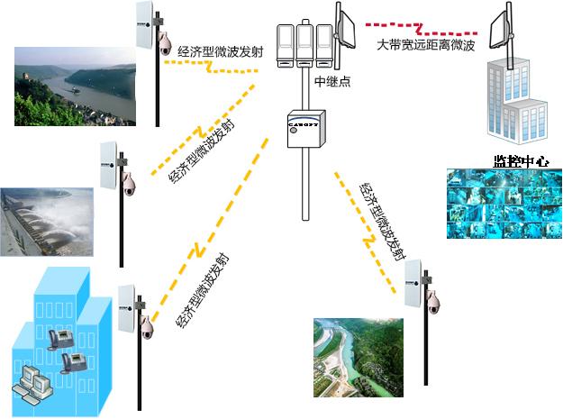[size=4]水库大坝监控点一般分布在较广阔的范围内,与监控中心距离较远,由于地理条件的限制,河流山脉等障碍往往难以架设线缆。导致有线手段常常无法经济、有效地实现监控,采用无线微波传输手段来实现航道监控、水文监测、闸门控制、水利设施监控、业务数据接入等现场监控点的远程无线监控系统,无需铺设网络电缆,可迅速方便地在需要监控的地方架设前端监控设备,具有很强的实用性、灵活性和可扩充性。由于需要实时传送图像信息、监控数据、业务数据等,所以无线系统必须可靠稳定。