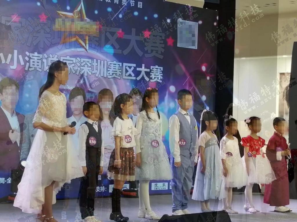 深圳市某新闻媒体中心,应主办方要求,需将儿童演讲赛场直播情况拍摄录制下来,并传送至赛场外1公里处的校方展播厅里。为校方其他培训学员作为演讲实例来当场教学,以及为参赛选手在该场演讲比赛中存在的细节问题进行分析点评,以便更细致深入的研究演讲技巧。同时,作为分赛区,其现场直播情况需发给总赛区的主办方,来进行优秀选手的评分评。