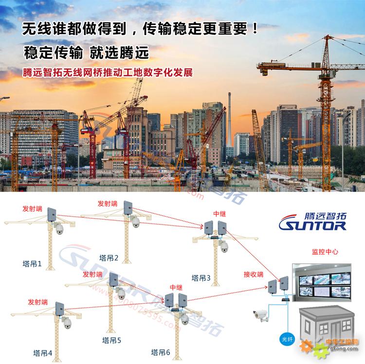 腾远智拓的工地数字无线监控系统根据功能由三个部分组成: