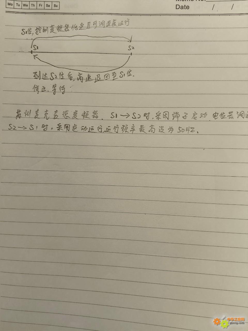 一个客户要求用变频器实现一个从S1位(电位器可调速)进给到S2位,然后高速返回到S1位停止的电路图。主轴电机接触器联动启动,返回到S1位停止。各位大神看看还可以优化吗?先祝福大家双节快乐