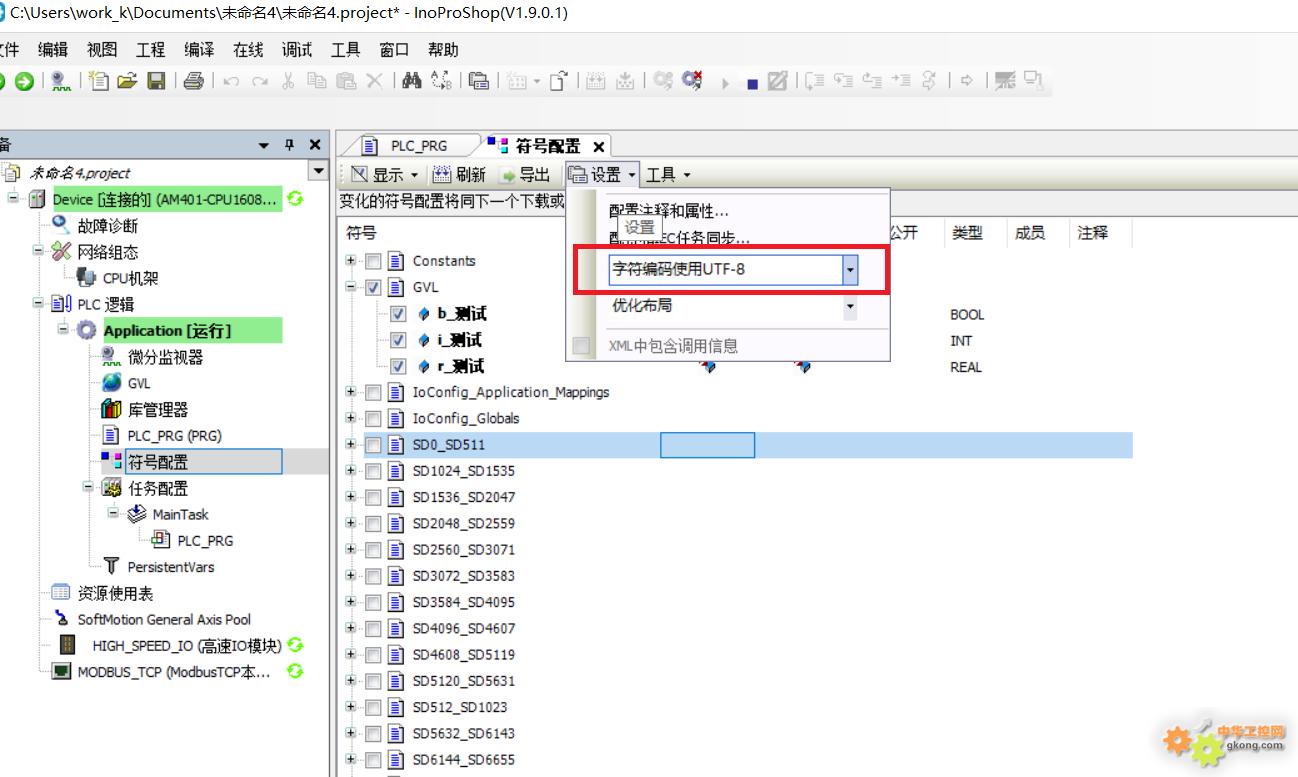 PLC这边只需要设置 UTF-8 即可,其它不用特别设置。<在线下载了程序重启下PLC,我也不确定是否需要重启~>