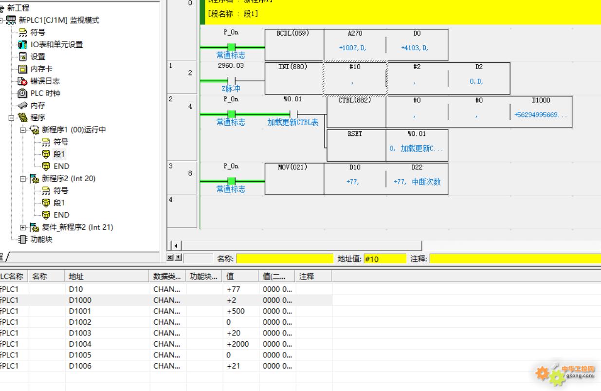 没办法,打电话问欧姆龙(简直是大救星!!!),然后让我搜索,找到了CTBL,表格中断!