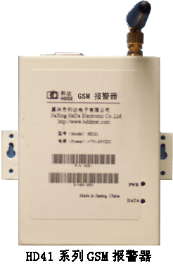 和达电子有限公司设计、生产的HD41报警器内嵌十六位单片机和高可靠性的GSM引擎(GSM Cellular Engine),配用开关量传感器及4~20mA标准信号,就能方便地组合各种报警系统及数据采集系统。
