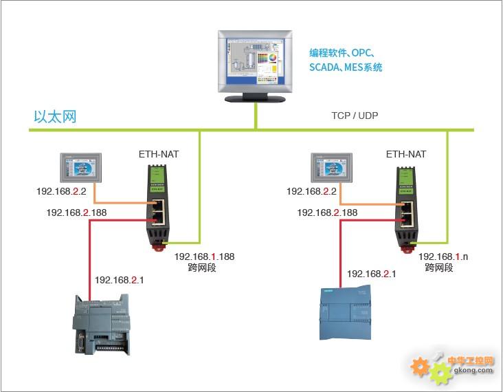 在大型工厂中,不同设备可能位于不同的网段,但它们需要相互通信以完成特定的生产任务。例如, PLC (可编程逻辑控制器)和 CNC (数控机床)可能位于不同的网段,但它们需要在线编程和数据采集,跨网段通讯技术可以解决这一问题,跨网段通讯可以实现不同设备之间的数据共享和管理,对于跨地区的远程运维,跨网段通讯技术可以解决带宽不足、延迟过高等问题,确保PLC程序能够成功下载和调试,提高远程调试的效率和可靠性,对网络熟悉的工程师会选用路由配置来实现跨网段,但是设置复杂容易会乱,对于新手是很不有好的,可以尝试使用德嘉出品的网络耦合器来实现这个功能,通过浏览器两步就可设置完成,轻松实现跨网段通讯。